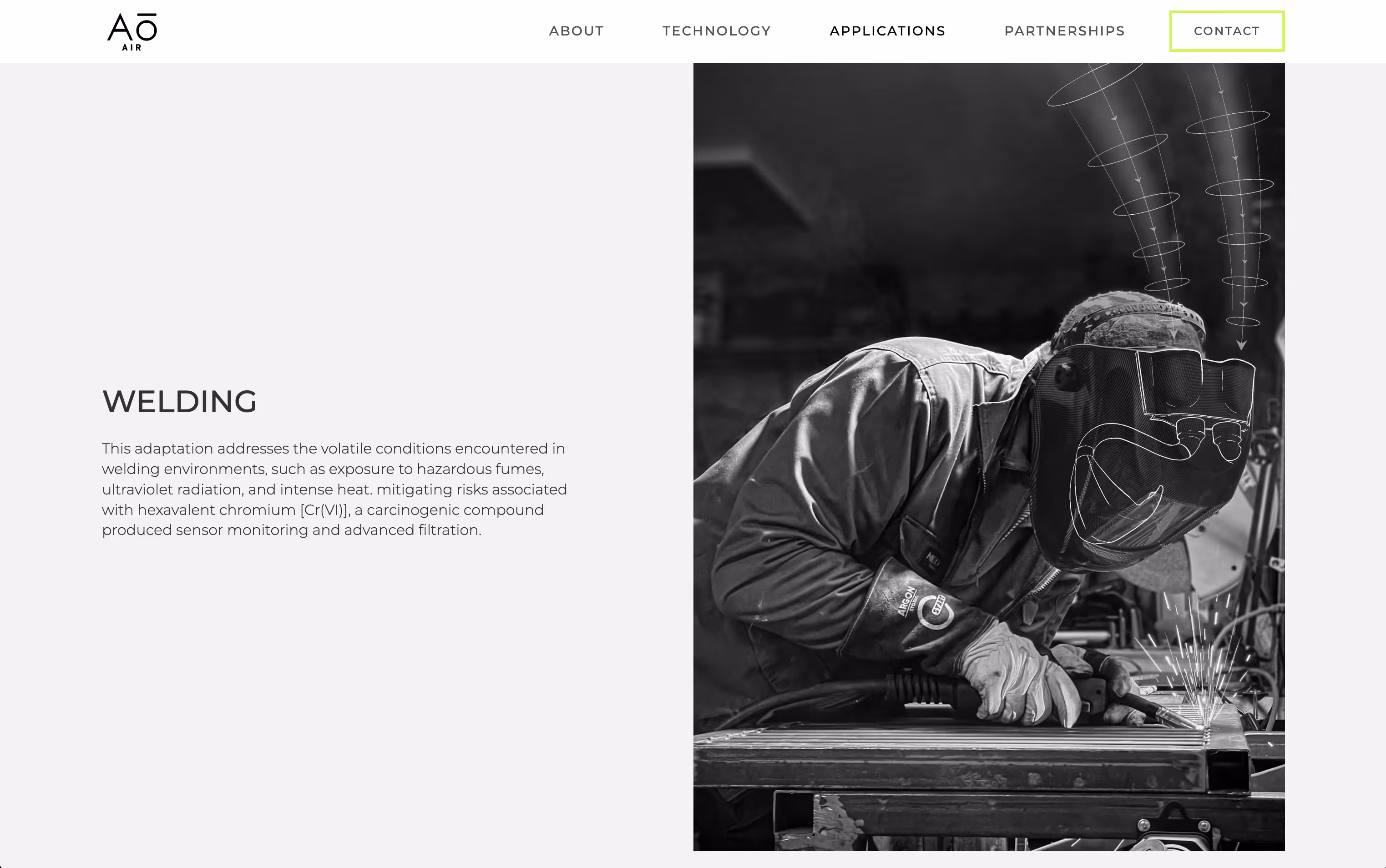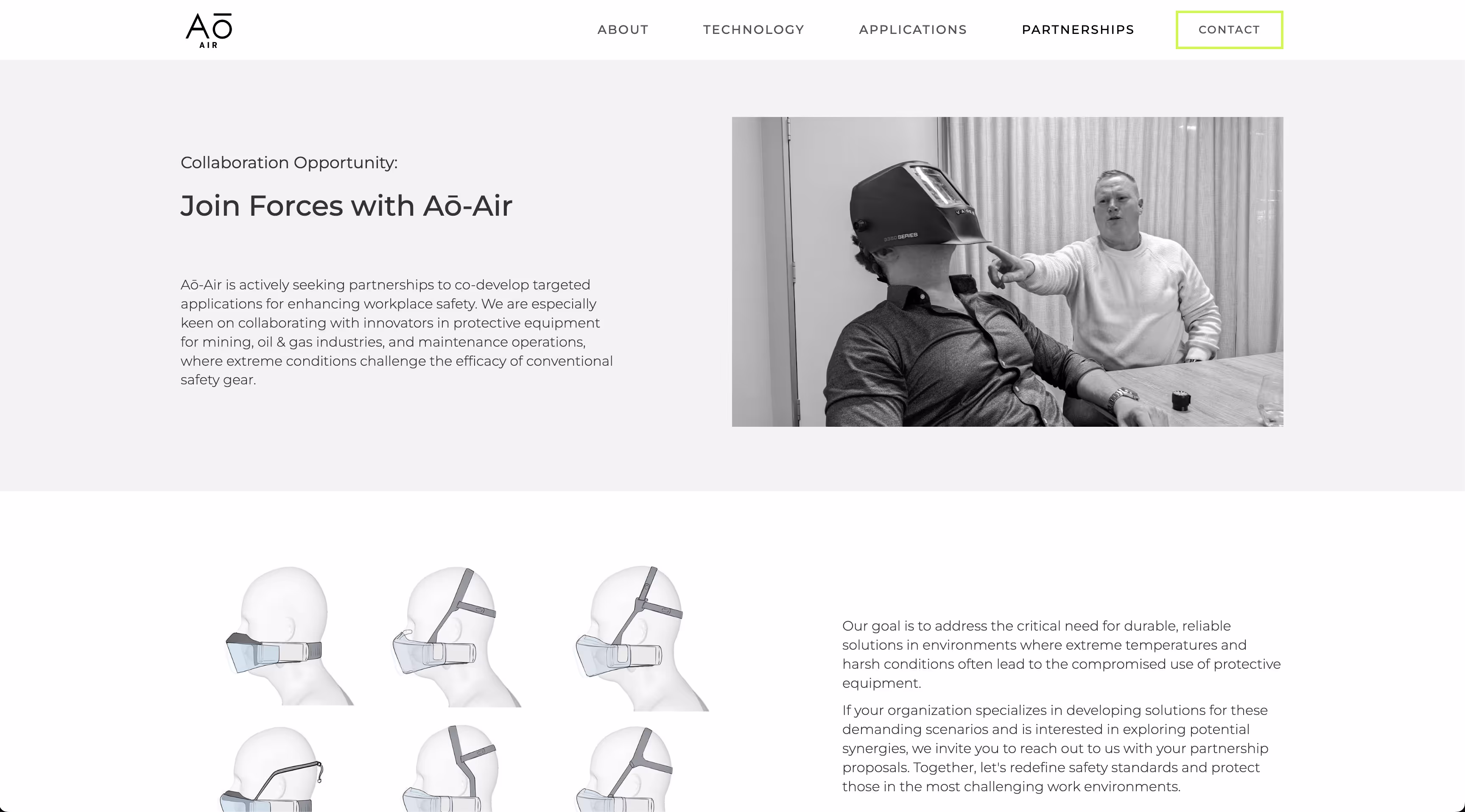 The project involved repositioning the brand from a lifestyle-oriented product to one with industrial applications. This transition required a strategic redesign of their website to appeal to B2B clients and professionals in industrial sectors. The challenge was to shift the brand narrative to emphasize technical capabilities, reliability, and functionality while preserving the innovative essence of Aō-Air. This meant moving away from lifestyle imagery and language to focus on features like product specifications, certifications, and use cases in industrial environments.