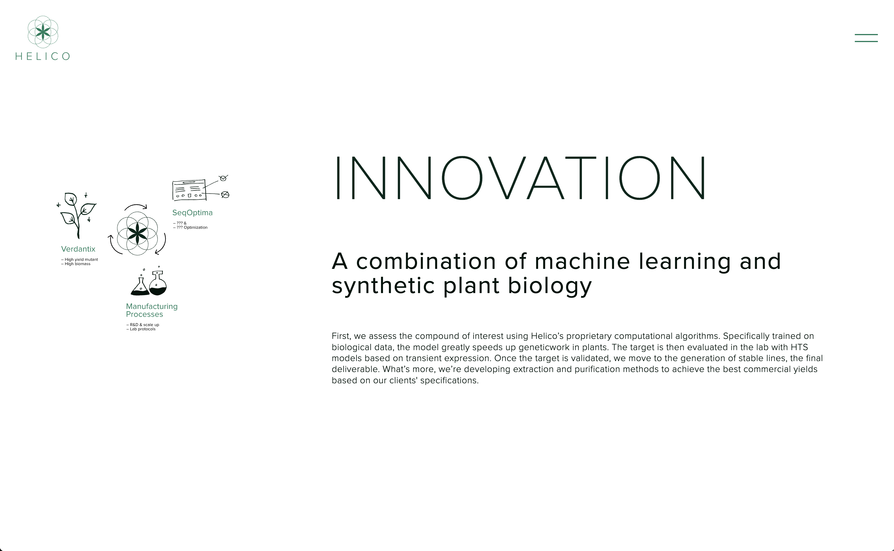 To address this challenge, we developed a visual identity for Helico that blends the precision of science with the essence of nature. The design draws inspiration from the intersection of cutting-edge technology and plant biology, reflecting both innovation and humanity.